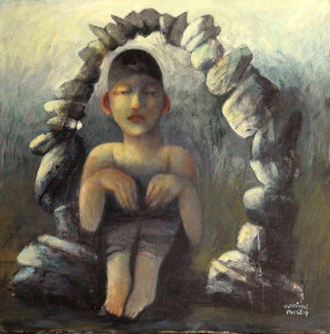 C’est ce sentiment de l’éphémère qui déconstruit par avance les corps figurés jeunes et pleins de vie, qui inspirent une attention aigüe aux frustes espérances de l’enfance, qui décolore les chairs, année après année, qui génère une inquiétude dans la douceur, une fêlure dans les masses, une attente mélancolique dans les poses.